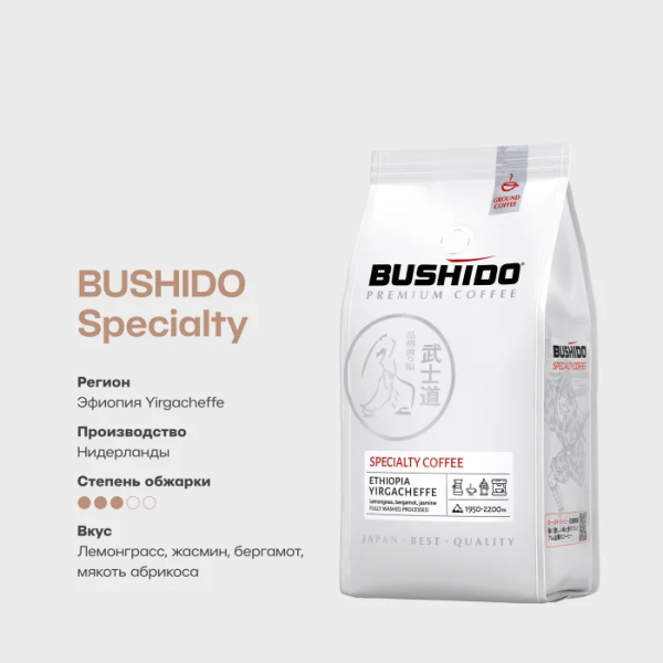 Кофе молотый BUSHIDO Specialty Coffee Ethiopia Yirgacheffe 227 гр.