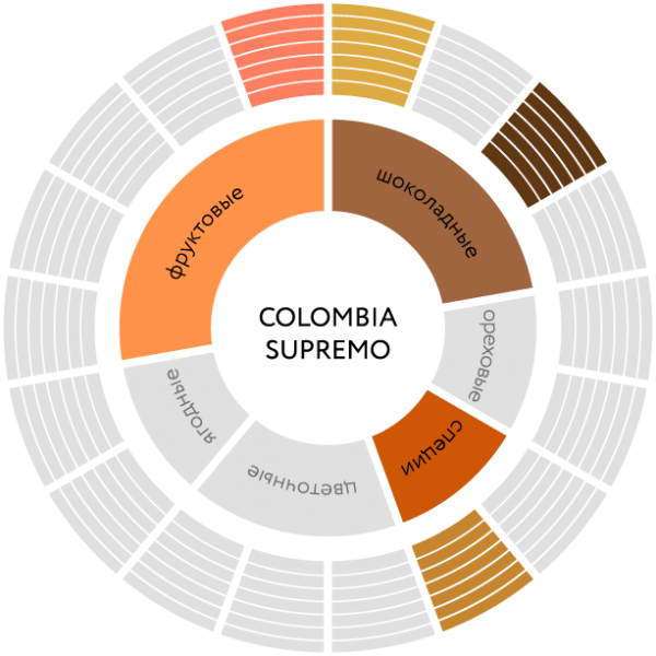 Кислинка: У Колумбийской арабики она обычно сбалансированная, винная, но не агрессивная. В этом купаже она мягко подчеркивает основные ноты, не доминируя.