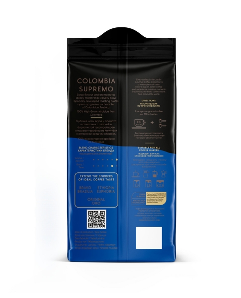 Jardin Colombia Supremo — это сбалансированный, насыщенный кофе с преобладанием глубоких шоколадных тонов, согревающим пряным послевкусием и мягкой винной кислинкой. Он отлично подходит для тех, кто ищет в чашке классический, узнаваемый и благородный вкус качественной арабики без резких переходов.