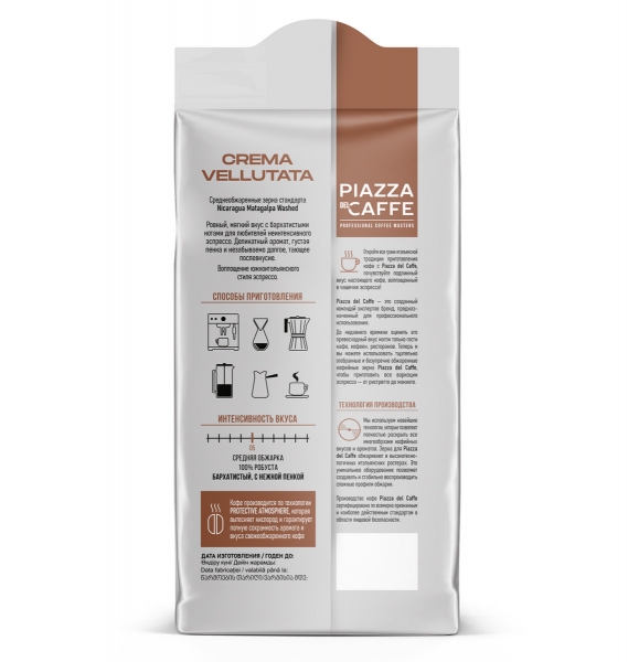 Piazza del Caffe Crema Vellutata (100% робуста) — это кофе для ценителей крепости, текстуры и классического "итальянского" эспрессо. Его выбирают ради невероятно густой кремы и мощного, прямолинейного орехово-зернового вкуса с благородной горечью. Это кофе-будильник и кофе-основа для молочных напитков, а не для изысканного дегустационного разбора.