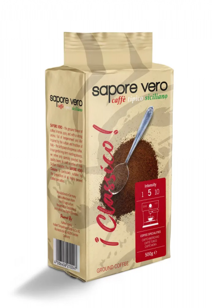 Откройте для себя неповторимый вкус итальянского кофе Sapore Vero, созданный с немецким качеством и тщательностью. Этот молотый кофе, произведённый в Германии, удивит вас своим насыщенным и пряным ароматом, полным темперамента и жизни.