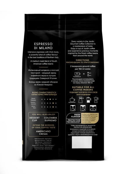 Великолепный бленд для приготовления идеального эспрессо в северо-итальянской традиции. Тонкая шоколадная горчинка, присущая арабике из Южной Америки, раскрывается во всей полноте благодаря силе отборных зерен робусты, которая вносит в бленд густоту и плотность.