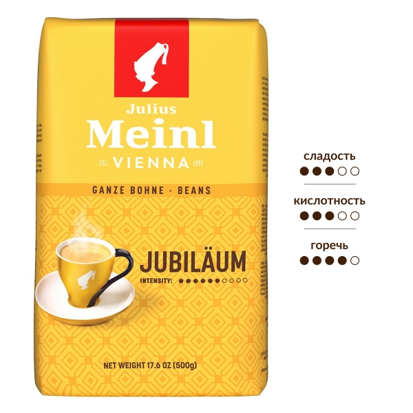 - Кофе в зернах Jubilaum (Юбилейный) – премиальный бленд кофе настоящей венской обжарки,Кофе в зернах Jubilaum (Юбилейный) – премиальный бленд кофе настоящей венской обжарки, характеризуется насыщенным и сбалансированным вкусом с нотами цитруса на послевкусии. В аромате жаренный фундук, свежая выпечка, специи. Тело бархатистое и обволакивающее.