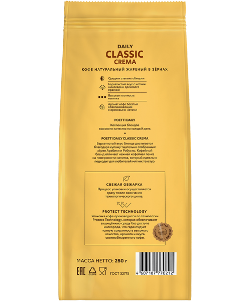 Кофе в зернах POETTI Daily Classic Crema 250 гр.